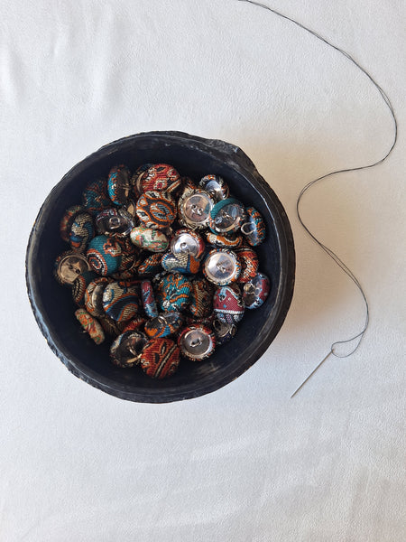 Fabric covered buttons, wire backs.