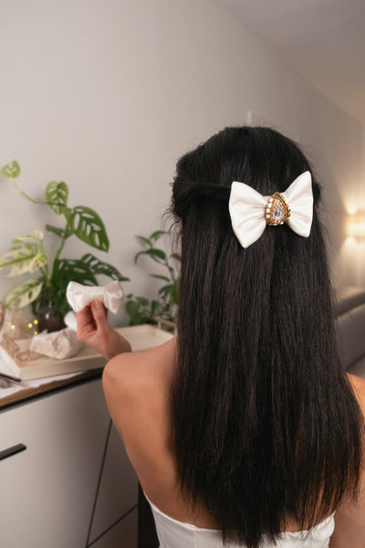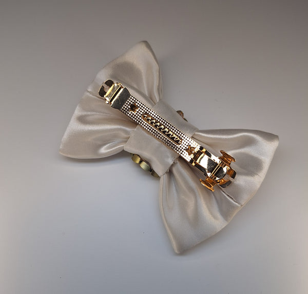 Ivory Satin Bow French Barette Hair Clip
