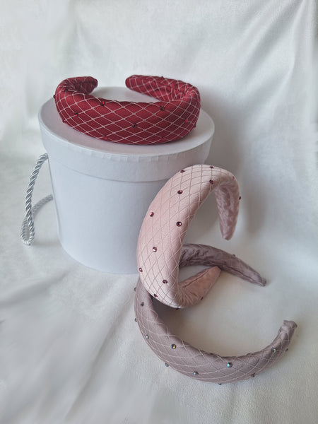 Veiled Satin Halo Headbands, perfect for a bridal occasion, chic and classic.